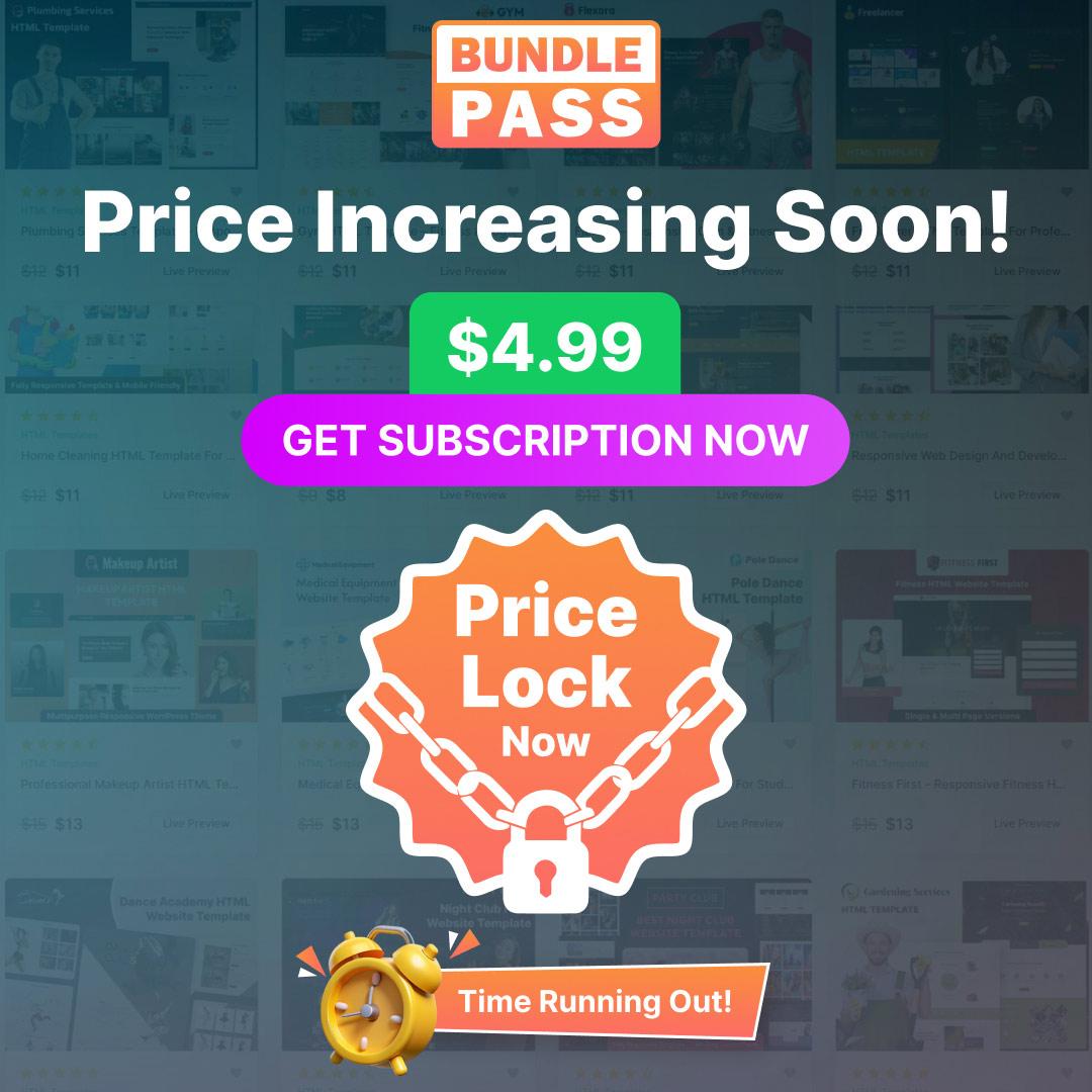 Bundle Pass isn’t just another plan — it’s your gateway to unlimited creativity. With one affordable subscription, you get instant access to Template Bundle’s entire premium collection of website templates, WordPress themes, and design assets.